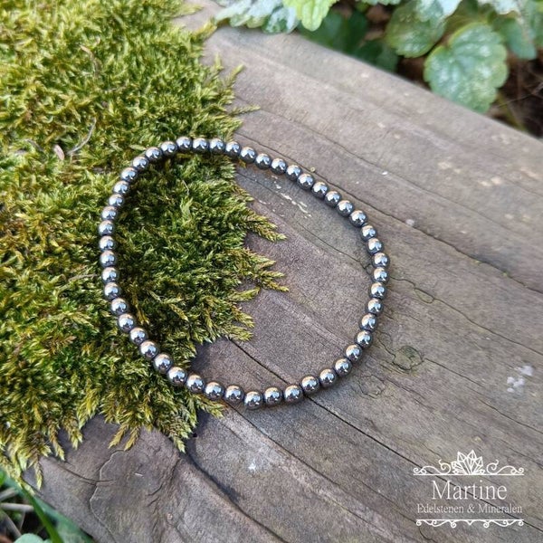 Elastische armband met Hematiet kralen.