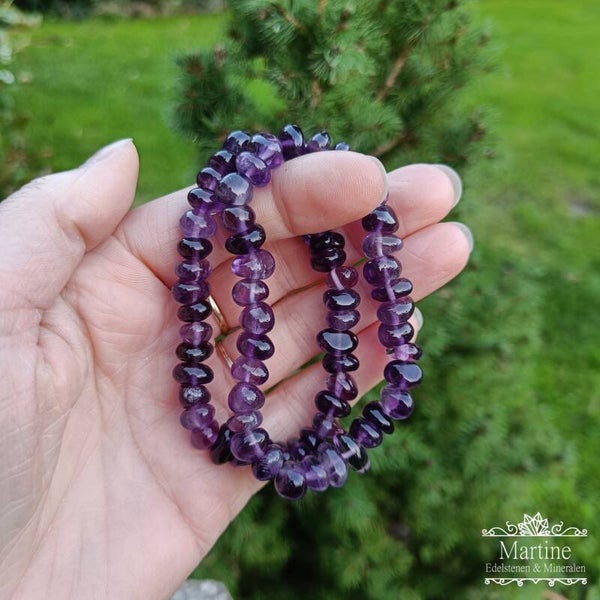 Amethist beschermt tegen negatieve energieën, stimuleert spirituele groei en intuïtie, kalmeert de geest en bevordert innerlijke rust. Helpt bij het loslaten van negatieve emoties en gedachten, reinigt en balanceert het energieveld, bevordert een goede nachtrust, helderheid en mentale focus. Helpt bij het omgaan met stress en angst, stimuleert creativiteit en inspiratie.