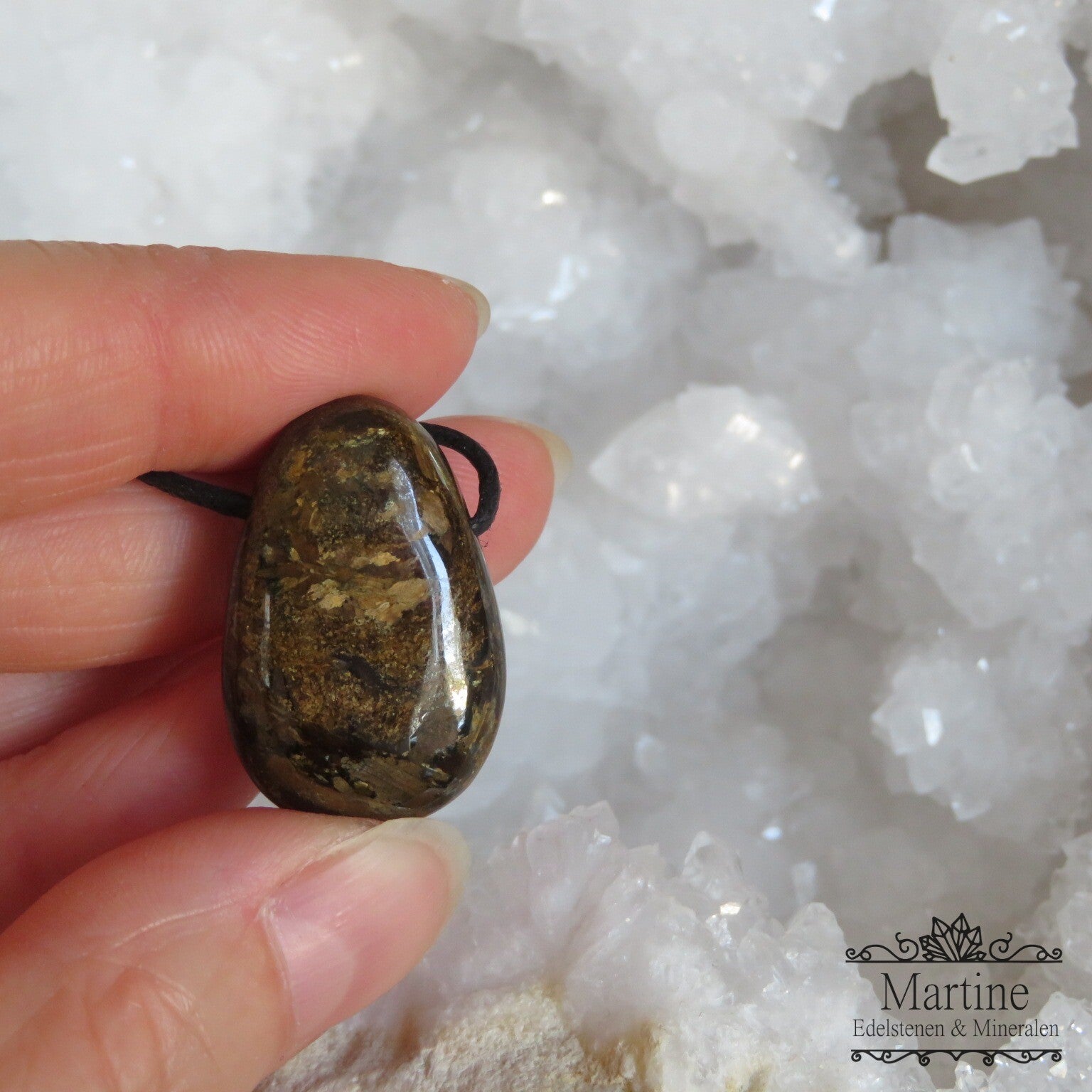 Bronziet is een krachtige beschermende en aardende steen. Bronziet bevordert moed, wilskracht, zelfvertrouwen en assertiviteit. Een opbeurende steen welke je helpt om situaties onder controle te krijgen en in het hier en nu te blijven.