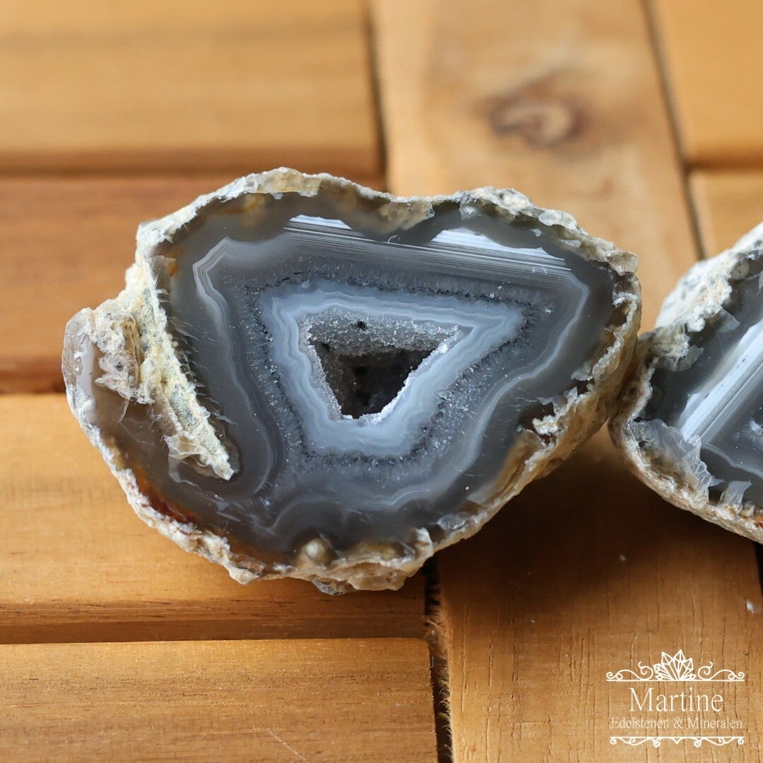 Agaat werkt kalmerend, aardend, beschermend, geeft troost en harmoniseert. Agaat laat je veilig voelen en zorgt voor zowel geestelijke als emotionele rust en balans. Helpt bij heimwee en oorsuizingen en sterkt het hart. Ook is Agaat een helpende steen om jezelf te accepteren en te vertrouwen.