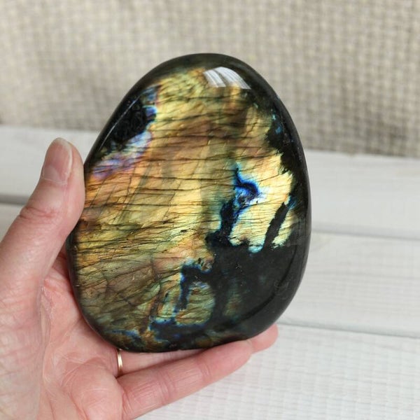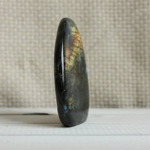 Labradoriet een mystieke en beschermende steen die licht brengt. Labradoriet voorkomt dat energie weglekt, verhoogt het bewustzijn en legt verbinding met universele energieën. Labradoriet stimuleert intuïtie en de kunst om goed te ‘timen’
