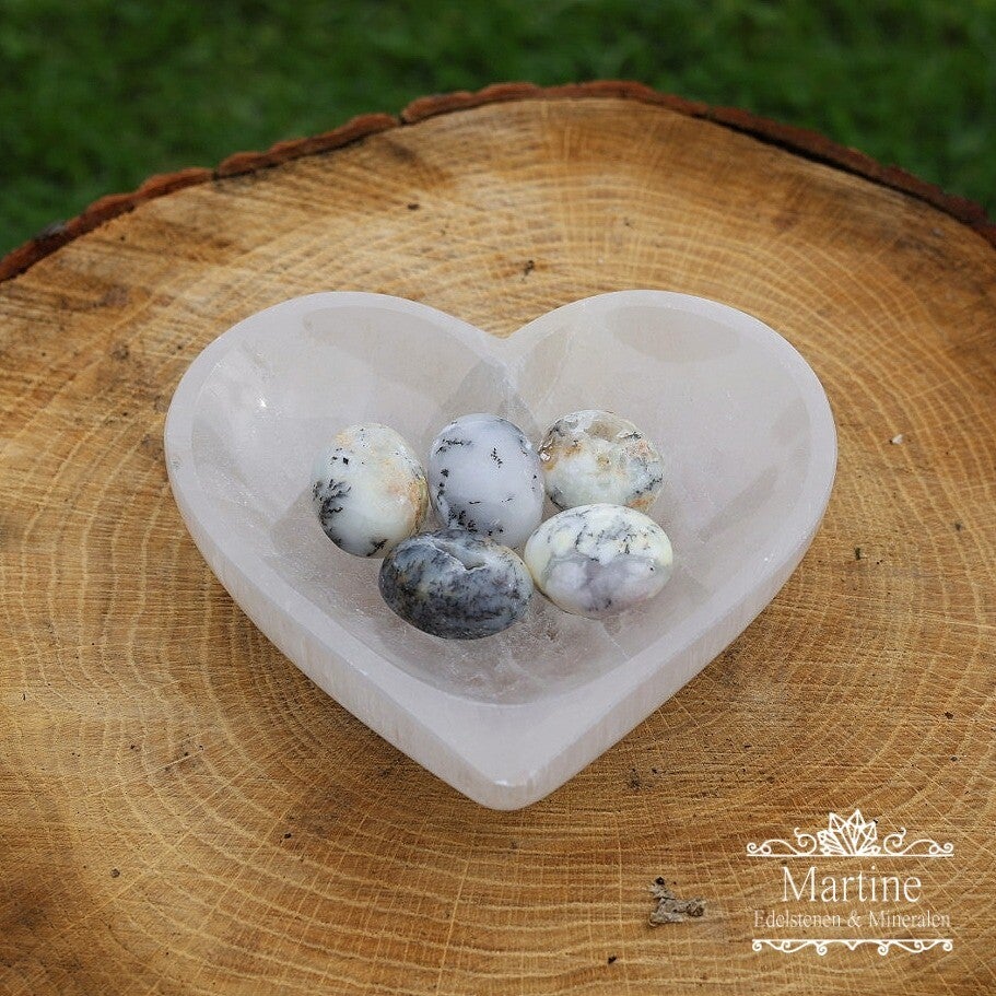 Dendriet Agaat werkt kalmerend, aardend, beschermend, geeft troost en harmoniseert. Agaat laat je veilig voelen en zorgt voor zowel geestelijke als emotionele rust en balans. Helpt bij heimwee en oorsuizingen en sterkt het hart. Ook is Agaat een helpende steen om jezelf te accepteren en te vertrouwen.