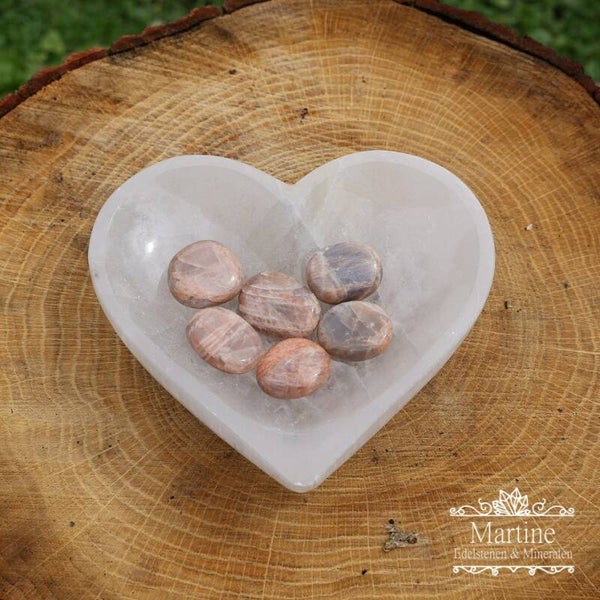 Roze Maansteen bevorderd je gevoel van eigenwaarde, van jezelf te houden en om jezelf te accepteren. Maakt creatief, heeft een troostende en liefdevolle energie welke kalmerend werkt bij boosheid en angst. Fijne steen voor gevoelige mensen.