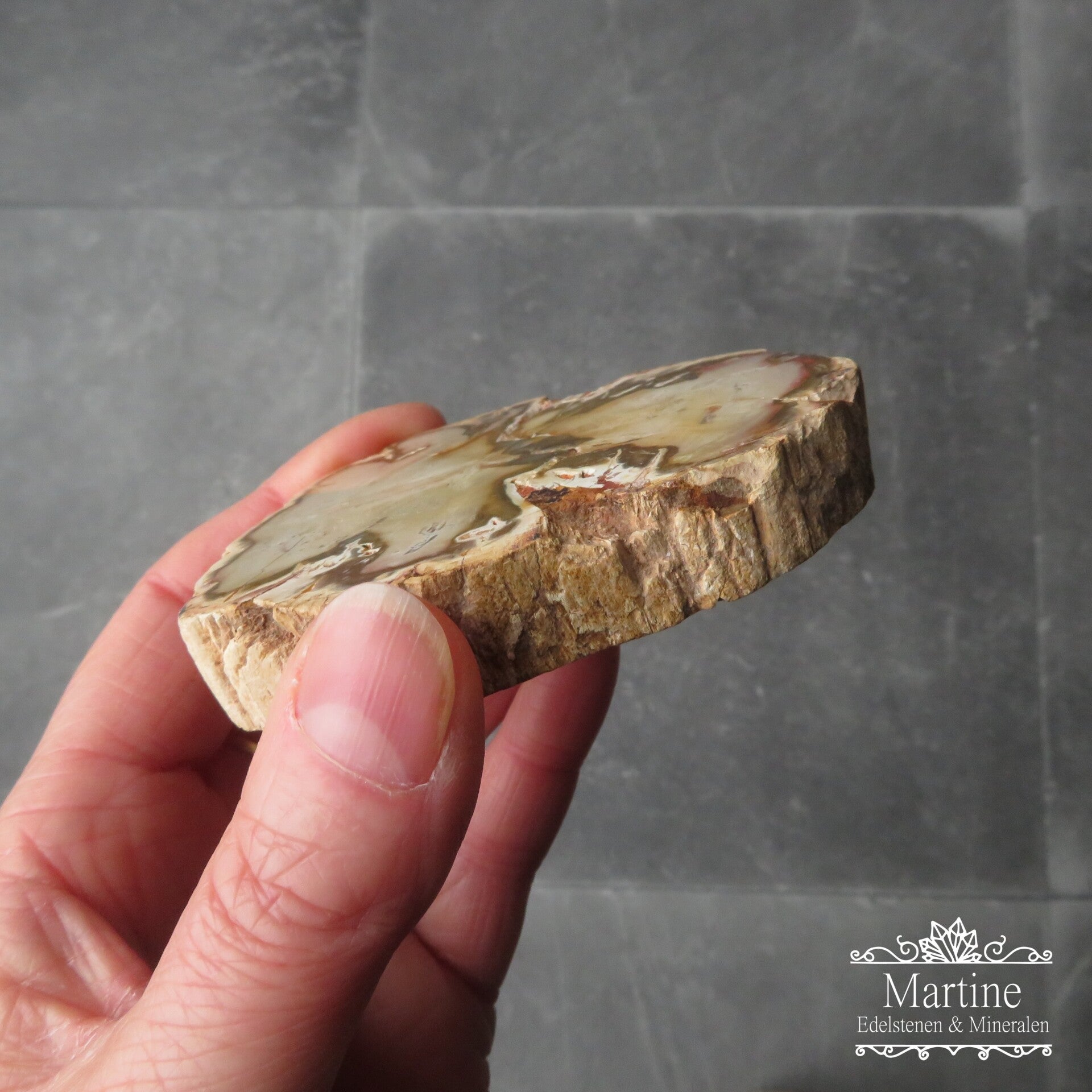 Versteend hout schijf, deze schijf is aan beide zijden gepolijst.