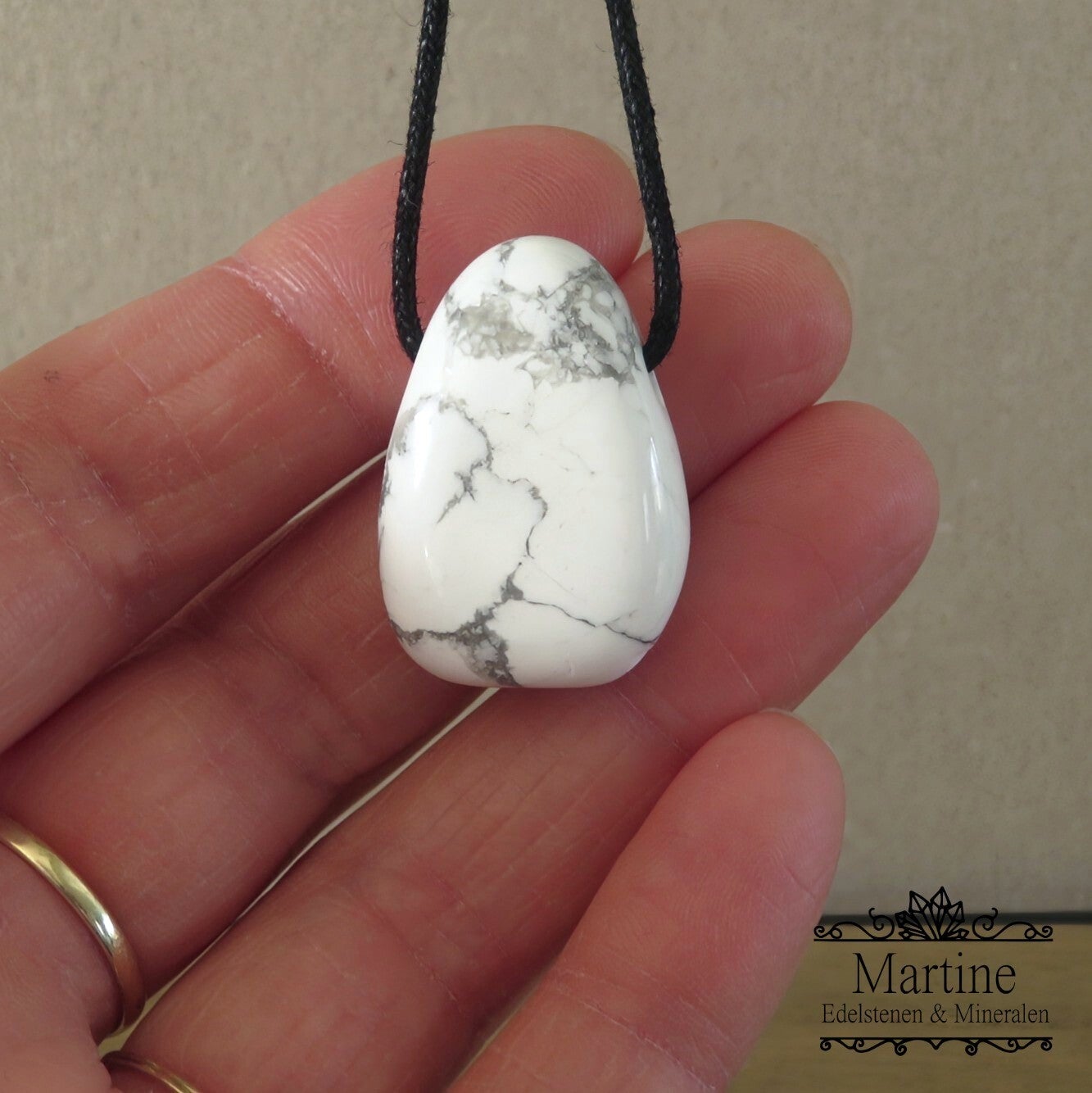Inclusief gratis zwart waxkoord zodat je de hanger direct kunt dragen.