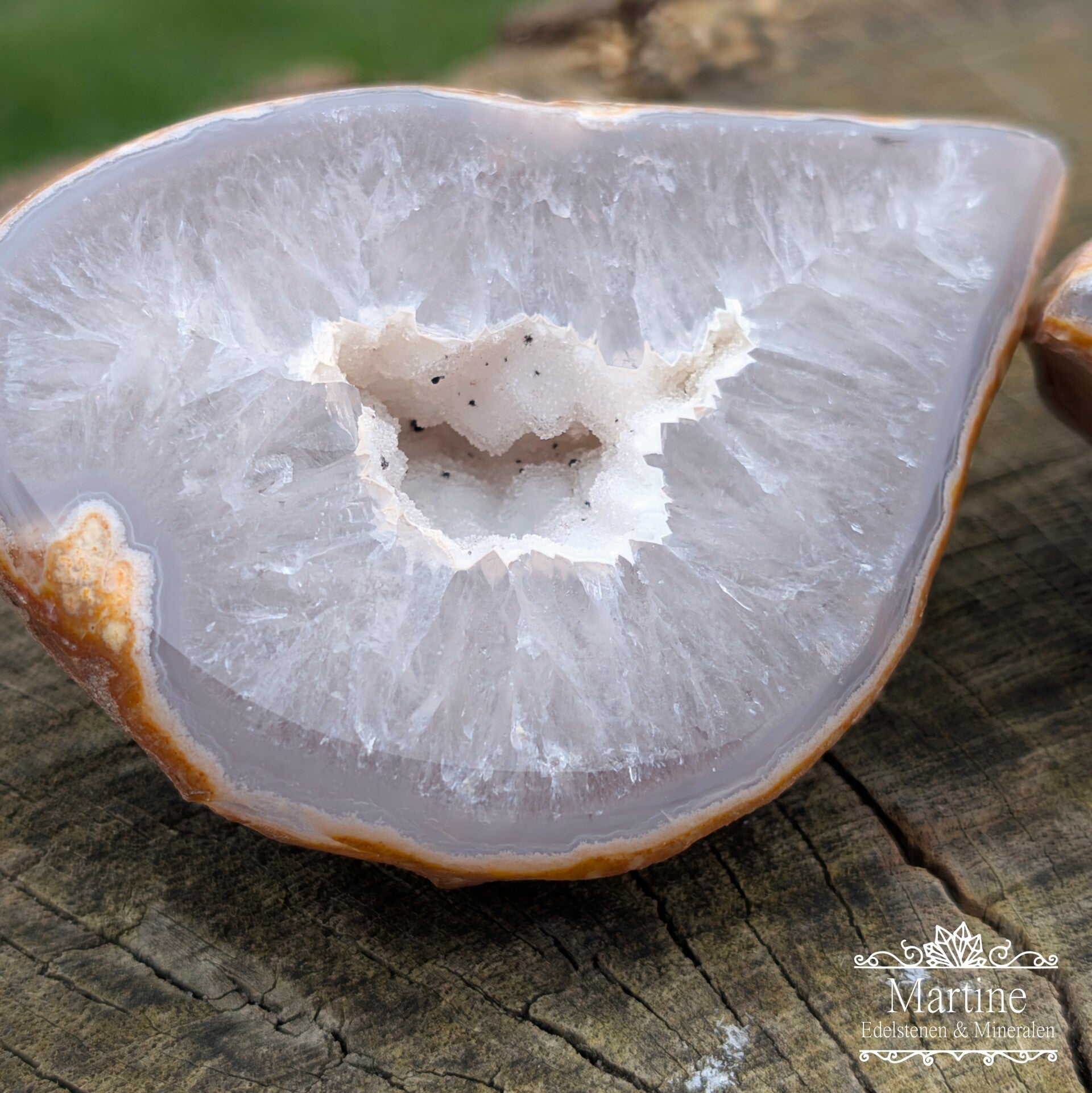 Agaat geode paar met druzy glinsterende kern.