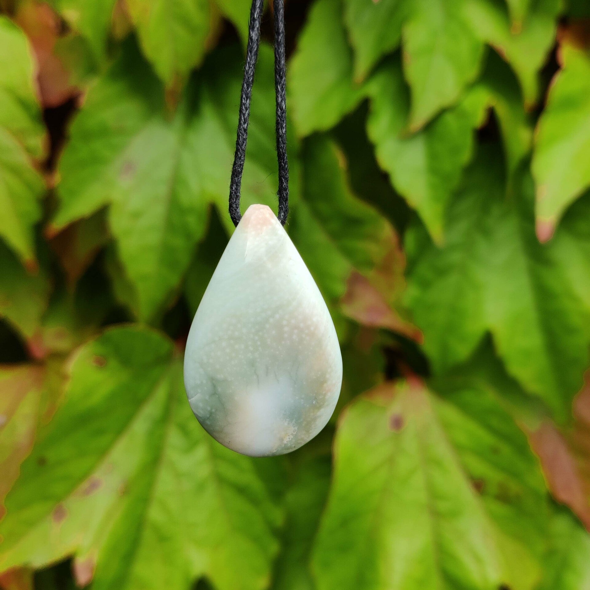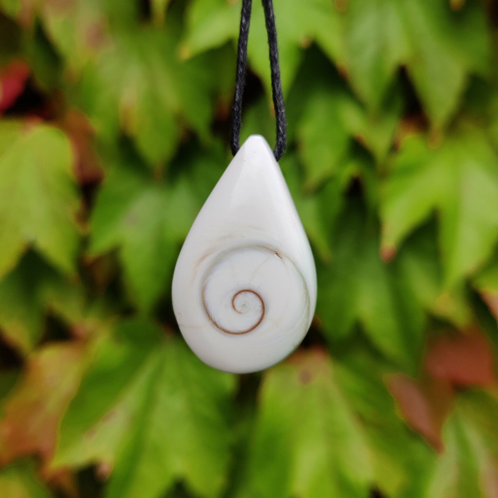 Prachtige druppelvormige Eye of St Lucia hanger uit Madagaskar.