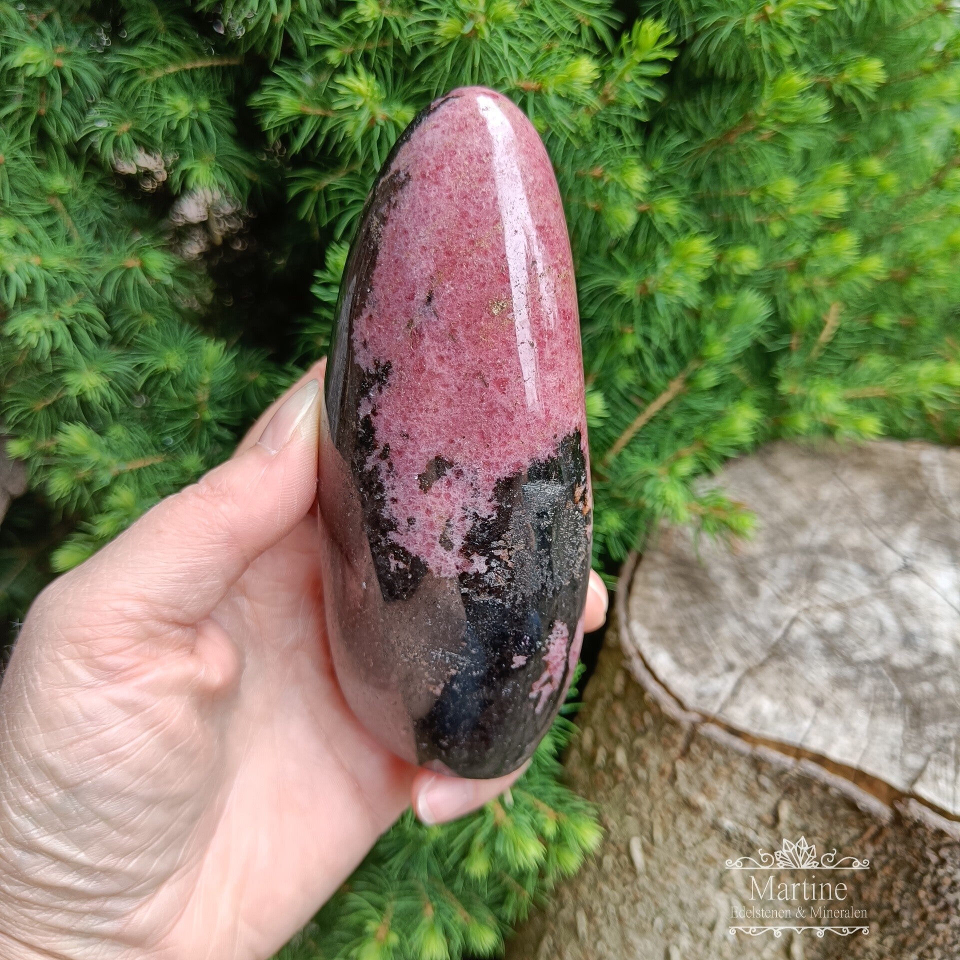 Rhodoniet sculptuur rondom gepolijst.