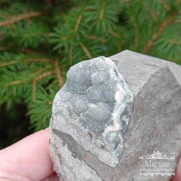 Amethist cluster met gepolijste rand en hoekje Chalcedoon cluster.